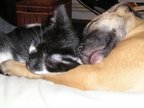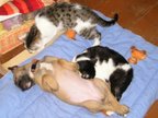 Cesta v autobuse proběhla naprosto v pohodě, Sára spala zakutaná v cestovní tašce a dění kolem ji nijak nevzrušovalo. Doma ji čekalo překvapení v podobě dvou malých kočičích dráčat, ale i s nimi si za chvíli rozuměla a vymýšlela lumpárny. Po chvíli řádění demoliční čety to vždycky dopadlo stejně, viz fotky ;o)
